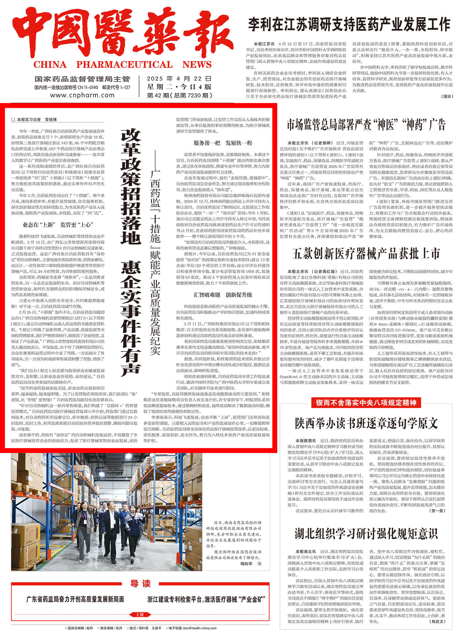 今年一季度,广西壮族自治区医药产业发展量质并进,新获药品批准文号7个,新增医药生产企业18家,新增第二类医疗器械注册证143张,45个中药配方颗粒品种完成上市备案,587个药品医疗器械产品办理出口销售证明,两款化妆品新原料完成备案……一连串喜人的数字让广西医药产业更加春意盎然。