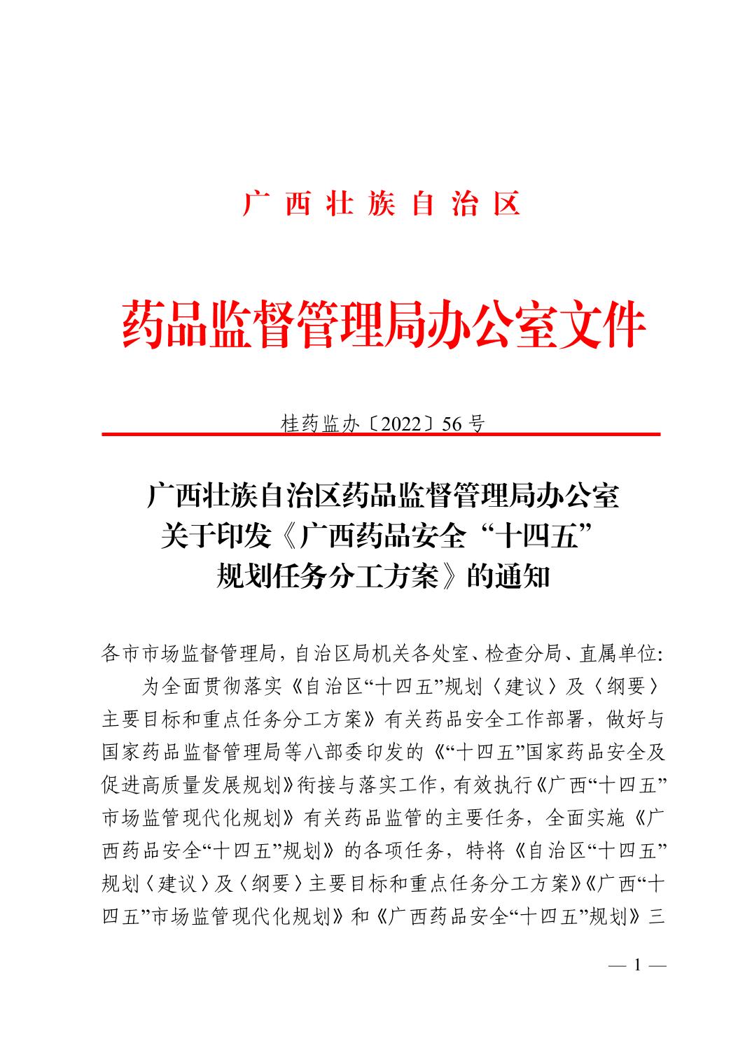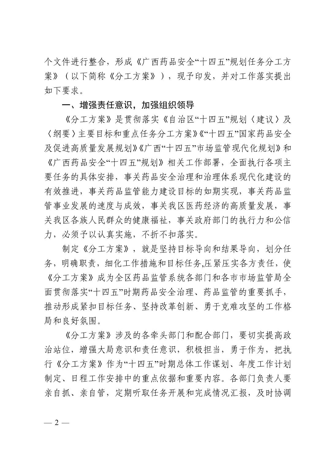 成人直播 办公室关于印发《广西药品安全“十四五”规划任务分工方案》的通知