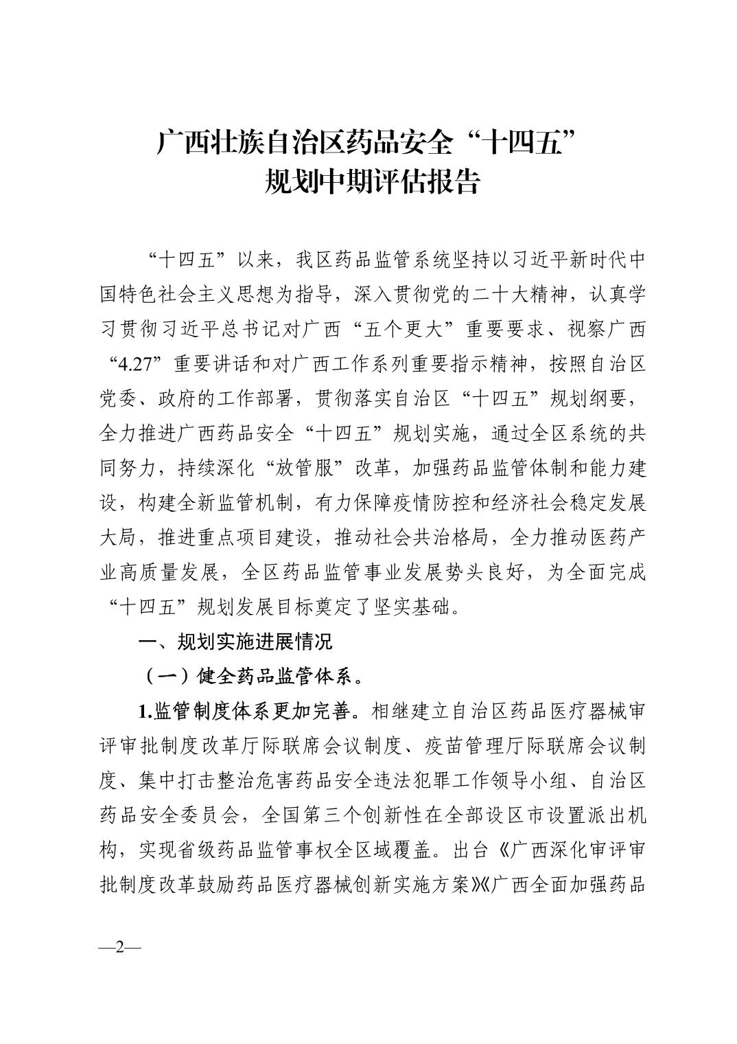 广西壮族自治区药品监管局关于报送广西药品安全“十四五”规划中期评估报告的函 - 中长期规划 - 成人直播 网站 - zbcr.net