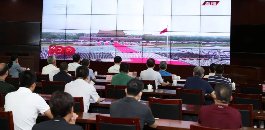 7月1日上午,庆祝中国共产党成立100周年大会在北京天安门广场隆重举行。中共中央总书记、国家主席、中央军委主席习近平发表重要讲话。成人直播组织党员干部职工集中收看直播盛况,共庆中国共产党百年华诞。